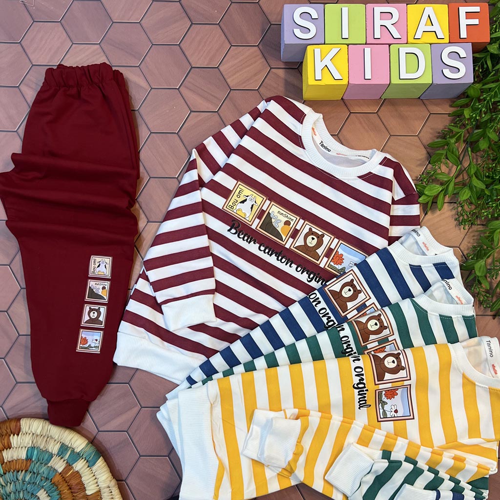ست بلوز شلوار بچه گانه اسپرت طرح راه راه حیوانات - کد 177