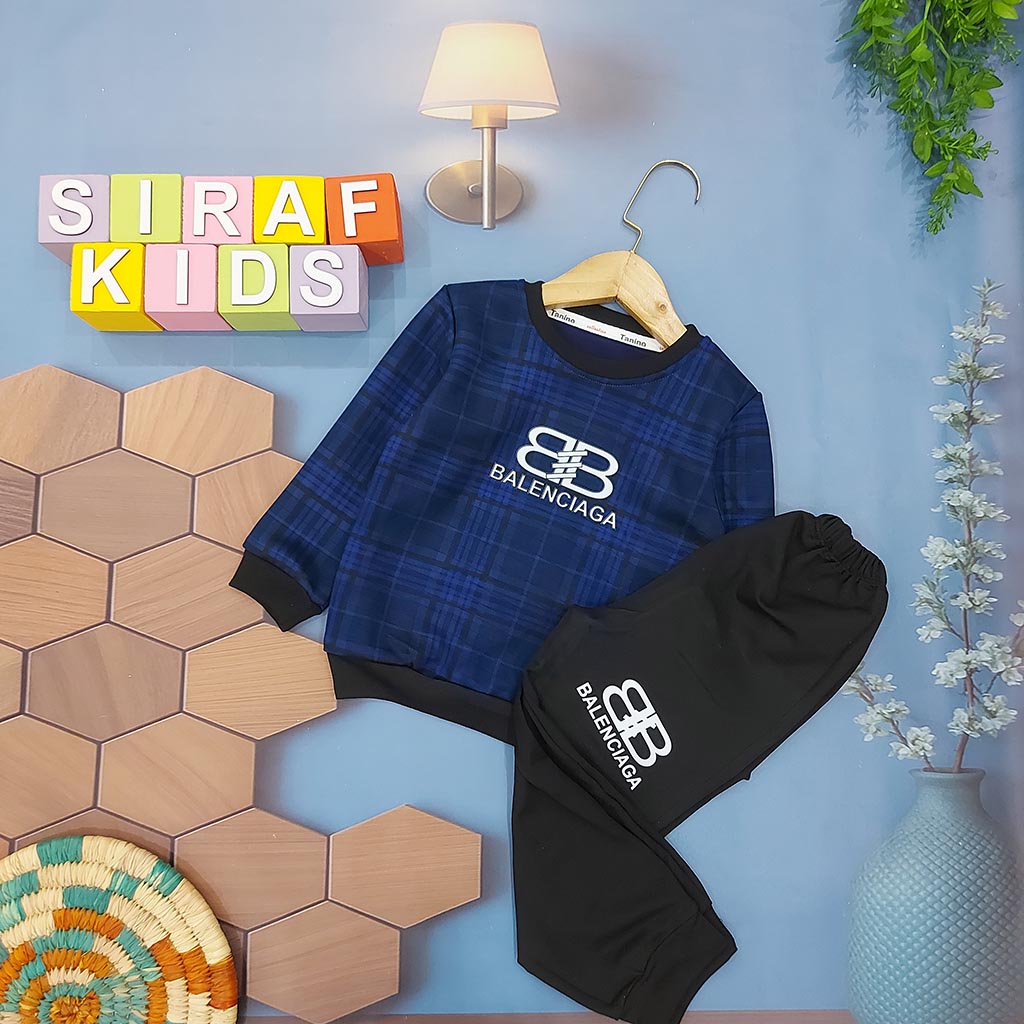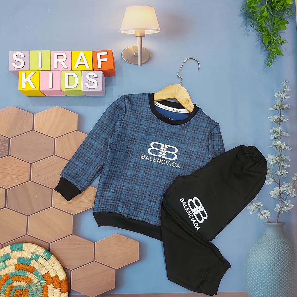 ست بلوز شلوار بچه گانه دو رو طرح بالنسیا - کد 182